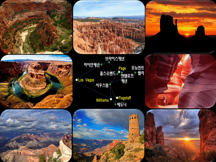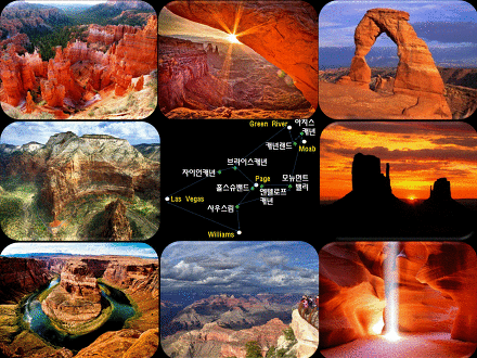 미서부의 3대 캐년인 그랜드캐년 사우스림, 자이언캐년, 브라이스캐년에 환상적인 빛의 향연장인 엔텔로프캐년, 콜로라도강이 휘돌아 말발굽 모양으로 새겨 놓은 홀수슈밴드, 광활한 대평원 지대에 뷰트, 메사라고 불리는 고립된 거대한 암석 기둥과 절벽이 자연의 조각물 향연을 펼치는 모뉴먼트밸리, 유타주의 국립공원중 가장 장 큰 면적을 가지고 있는 거대한 미지의 세계 캐년랜즈, 수억년의 장구한 세월이 빚어낸 천연의 조각물 전시장인 아치스캐년, 미서부 3대 드라이브 코스에 있는 에스카렌테와 캐피탈리프, 설문조사에서 미국내 가장 아름다운 도시로 선정되기도 한 마치 동화의 나라에 온 듯한 세도나까지 3박4일에 투어하는 환상의 그랜드써클 3박4일 투어코스를 강력 추천합니다.