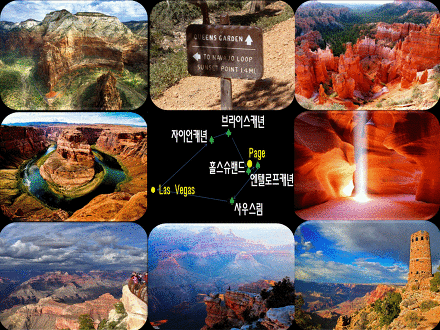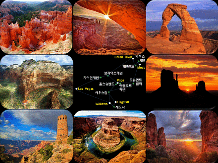 미서부의 3대 캐년인 그랜드캐년 사우스림, 자이언캐년, 브라이스캐년에 환상적인 빛의 향연장인 엔텔로프캐년, 콜로라도강이 휘돌아 말발굽 모양으로 새겨 놓은 홀수슈밴드, 광활한 대평원 지대에 뷰트, 메사라고 불리는 고립된 거대한 암석 기둥과 절벽이 자연의 조각물 향연을 펼치는 모뉴먼트밸리, 유타주의 국립공원중 가장 장 큰 면적을 가지고 있는 거대한 미지의 세계 캐년랜즈, 수억년의 장구한 세월이 빚어낸 천연의 조각물 전시장인 아치스캐년, 미서부 3대 드라이브 코스에 있는 에스카렌테와 캐피탈리프까지 3박4일에 투어하는 환상의 그랜드써클 3박4일 투어코스를 강력 추천합니다.