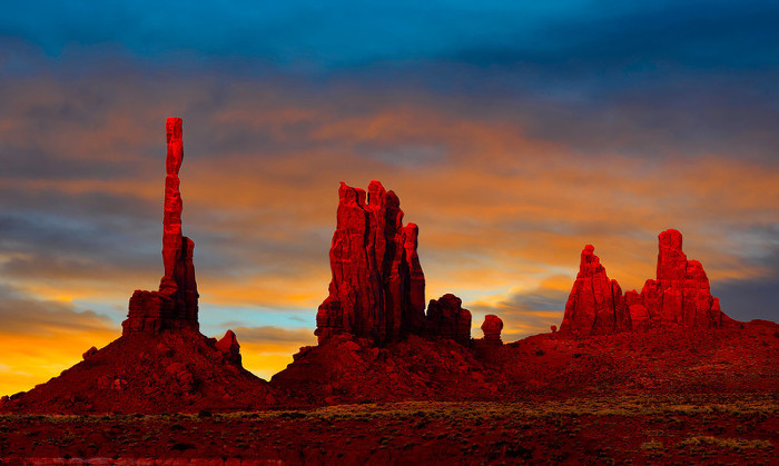 그리고 모뉴멘트밸리의 석양은 정말 황홀합니다. 붉은 대지에 붉은 하늘이 겹쳐진 모습이 정말 아름다운