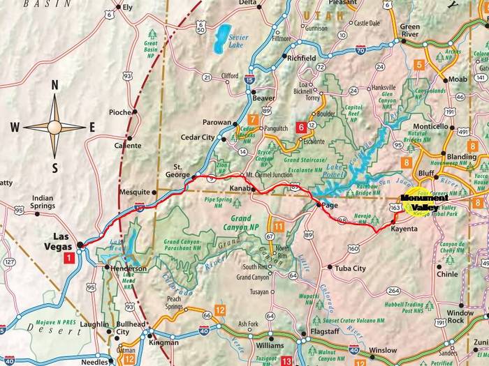 98 E -> 160 E -> 163 N -> Monument Valley Rd -> (The View Hotel)