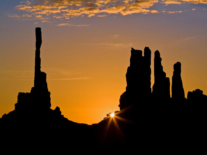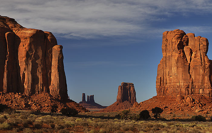모뉴멘트 밸리는 광활한 대평원 지대에 뷰트(Butte), 메사(Mesa) 라고 불리는 고립된 거대한 암석기둥