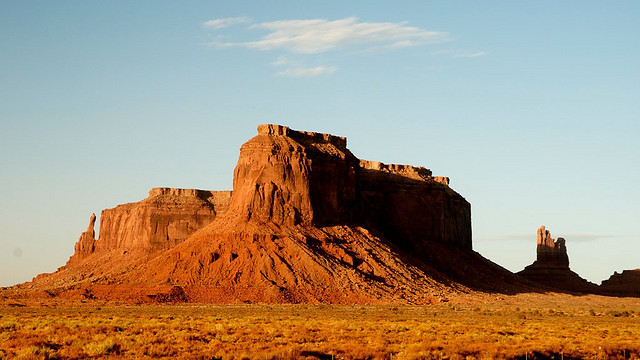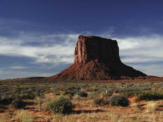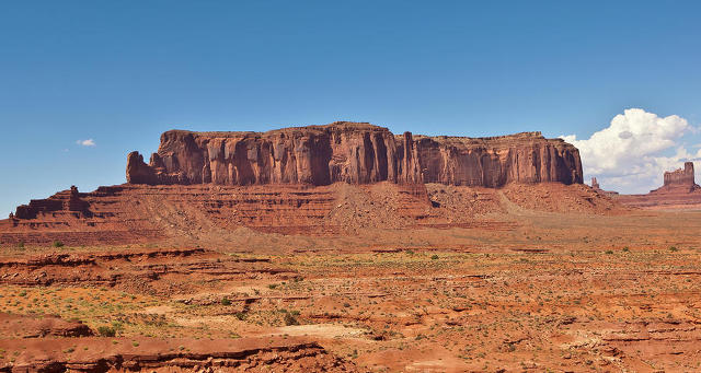Butte라는 모뉴멘트 밸리의 거대한 바위기둥은 수평지층(水平地層)이 높이 솟아올라 대지(臺地)가