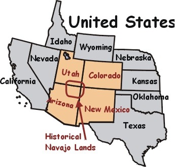 동북쪽부터 유타의 남부일부 뉴멕시코주의 서부, 콜로라도주의 남서부 끝단의 4개주에 걸쳐 있는