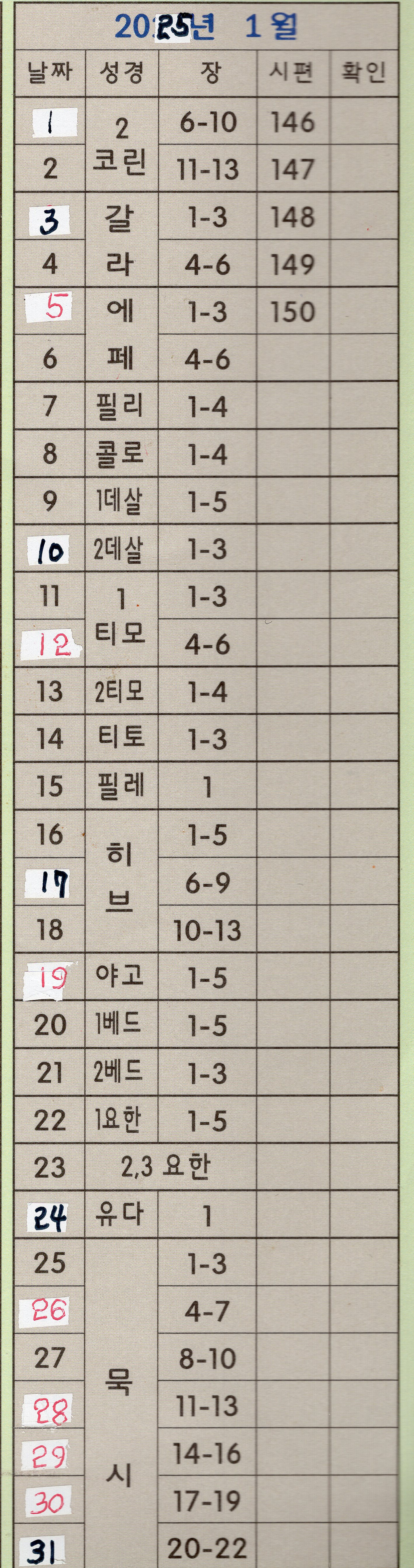 | 날짜 | 성경을 읽고 묵상(카페 닉네임)하였습니다 |