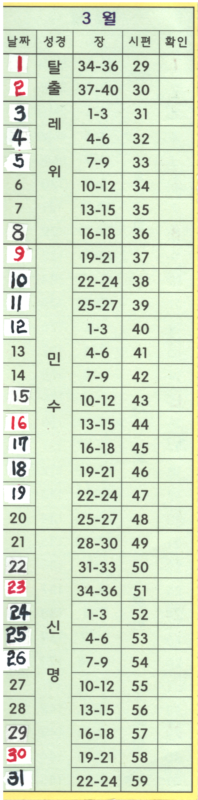 | 3월 성경읽기 | |