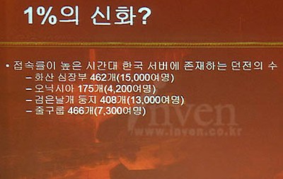 어제로 막을 내린 2006 블리자드 월드와이드 인비테이셔널 '개발자와의 만남'에서 사용된 자료에서도 알 수 있듯이, 공격대를 구성하여 레이드를 즐기는 국내 유저의 수는 수만명이 넘는다.