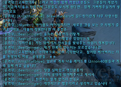 와우를 즐기는 직장인이나 라이트유저의 비애(?)를 많이 접하게 되는데 Union 40 공격대원을 만나보면서 자신이 즐기려는 컨텐츠를 대한 뚜렷한 의지만 있다면 시간, 인원등의 장애물들도 문제될 것이 없다는 것을 느끼게 되었다.