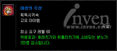 단점은 드랍하는 몬스터가 낙스라마스의 보스인 역병술사 노스라서 이 아이템을 소유할 수 있는 유저는 극히 일부가 될 것이라는 것.