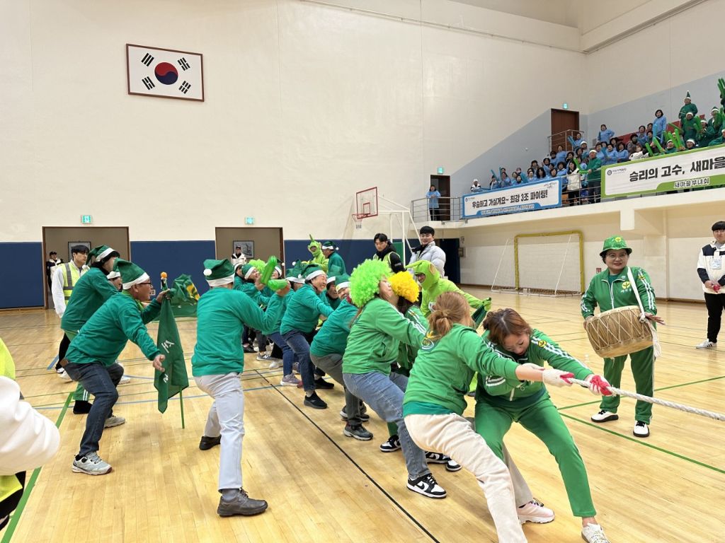 경찰인재개발원 체육관에서 큰 공 굴리기, 줄다리기, 승부차기, 사다리릴레이를 화합종목으로