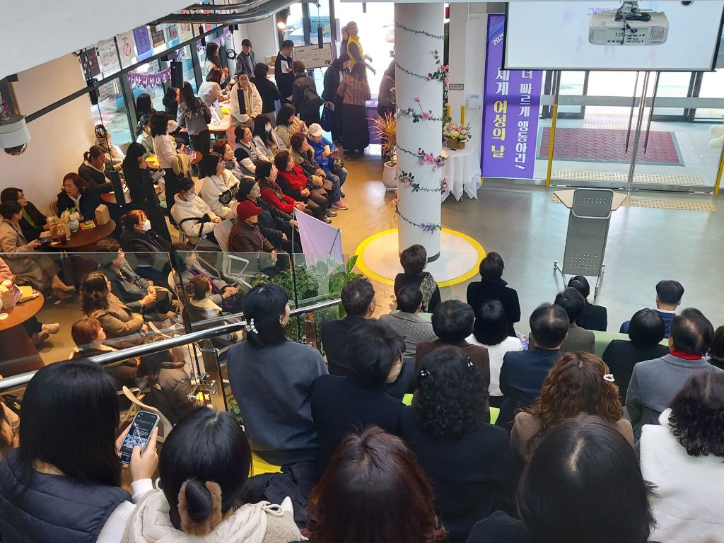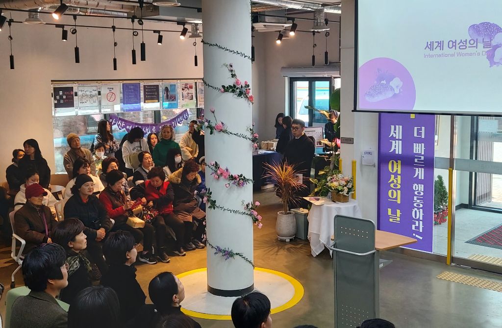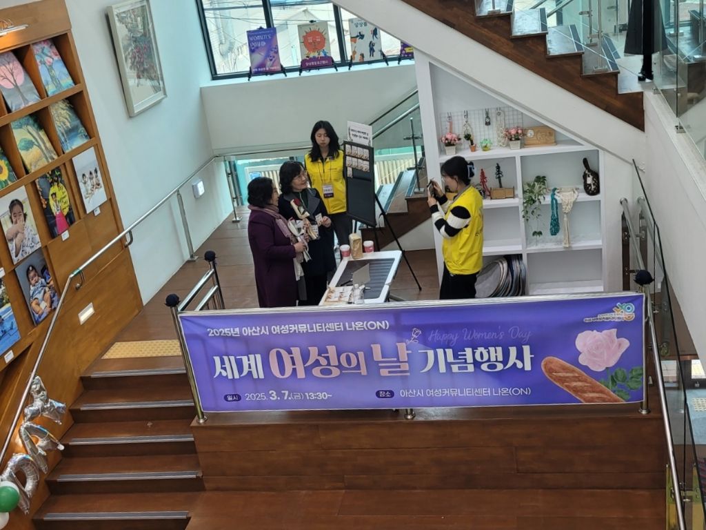 아산시여성커뮤니티센터나온(ON) 1층 로비에서 세계 여성의 날을 맞이하여 기념행사가 있었습니다.