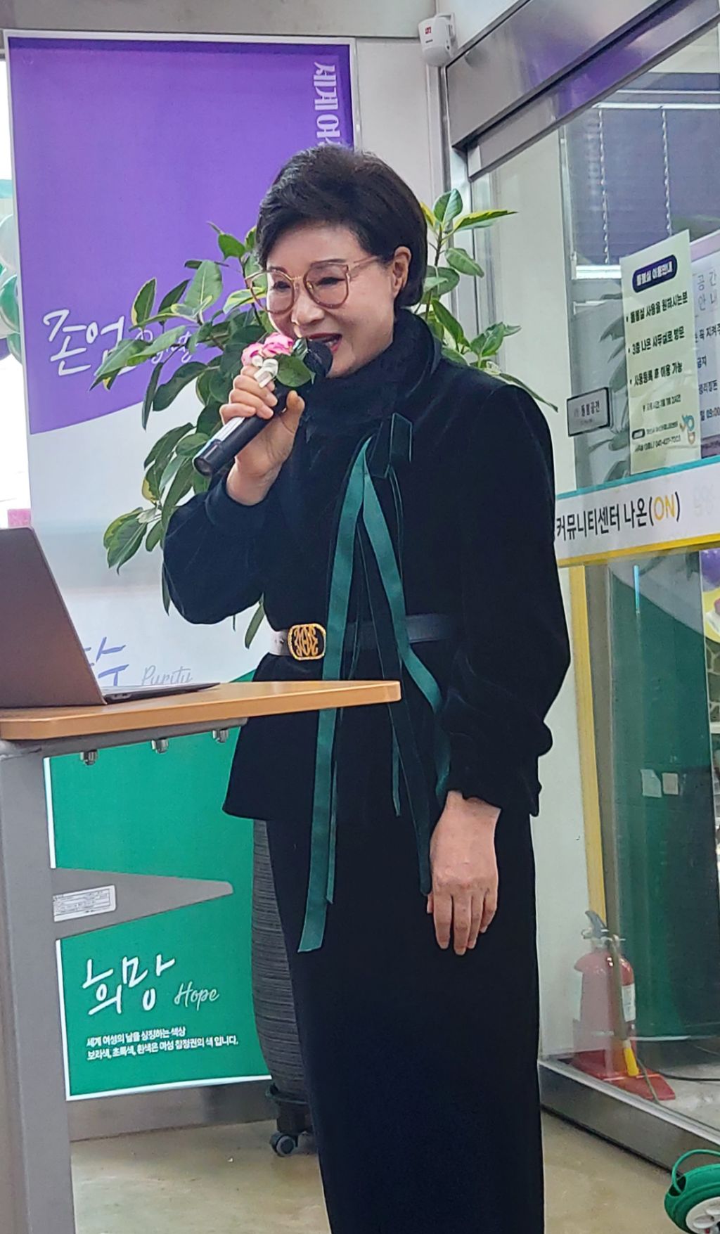 나온(ON)음악동아리 앙상블 여운의 축하공연을 시작으로 아산시 여성커뮤니티센터 나온(ON) 유옥순 센터장님의 기념사, 조일교 아산시장 권한대행, 맹의석 아산시의회 부의장의 축사로 이어졌습니다.