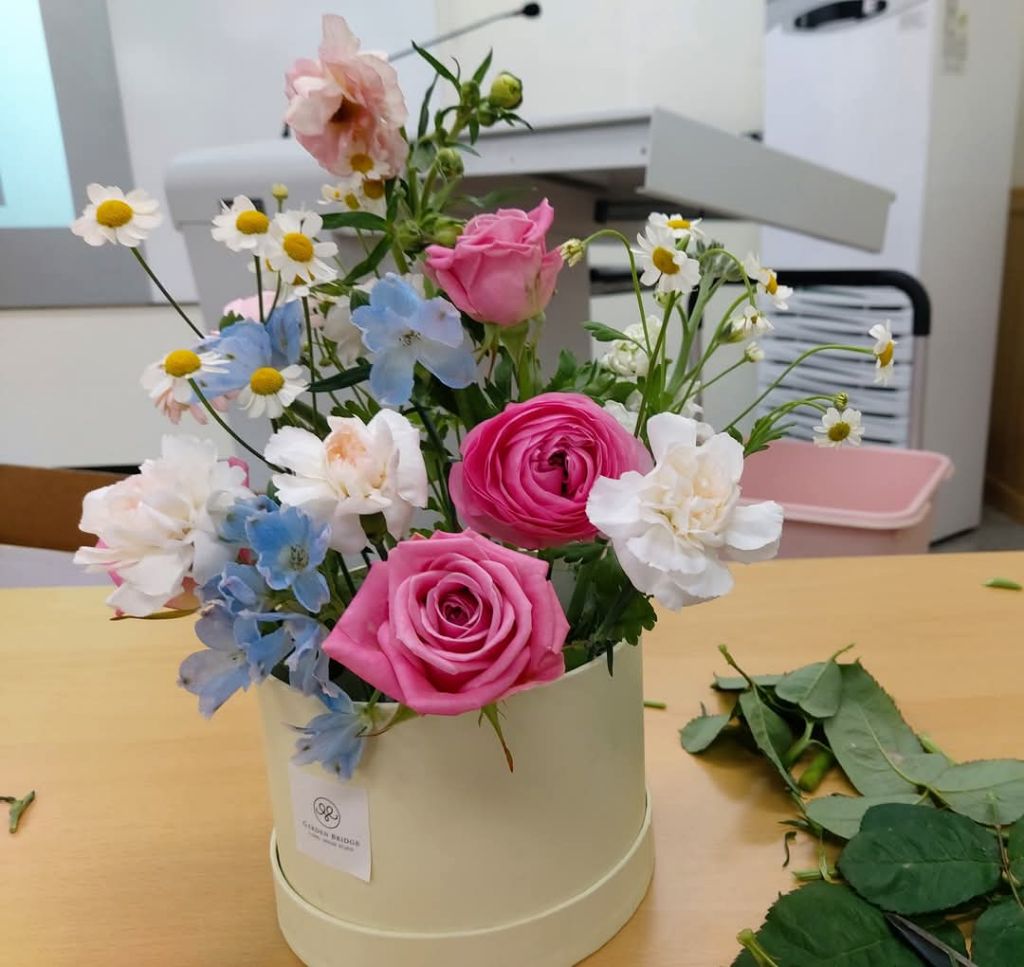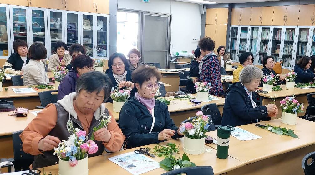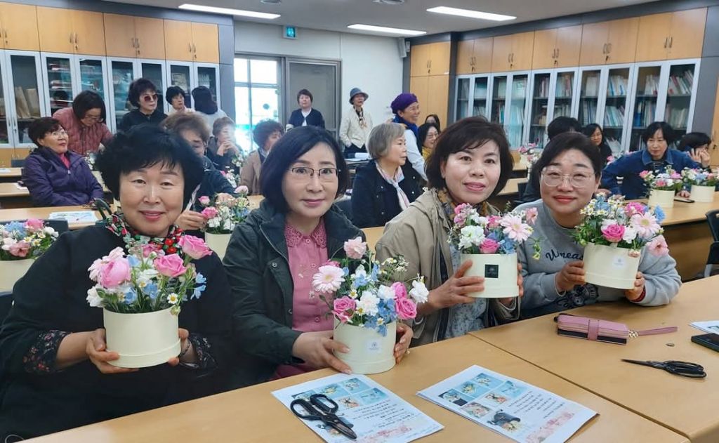 4월 7일부터 6월 30일까지 농업기술센터 다기능실에서 Flower Box, 화기 center piece, round 꽃다발, 플라워리스, 화병 꽃꽃이, 꽃바구니 순으로 6회에 걸쳐 진행됩니다.