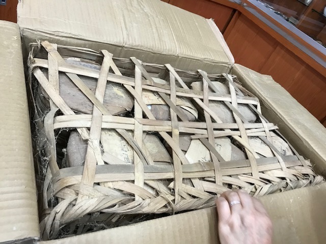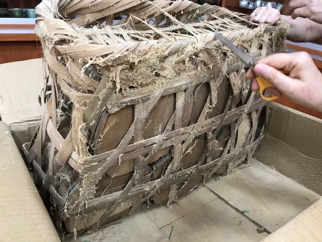 그러나 일층에 보관되었기에 상자는 거의 퇴색되지 않았지만 상자안의 대나무 포장은 많이 손상되어 있어 세월의 흔적을 알수 있다.