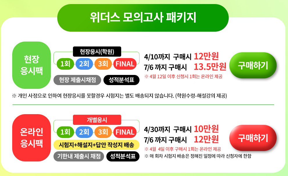 3) 현장응시 or 봉툼모고 배송 가능