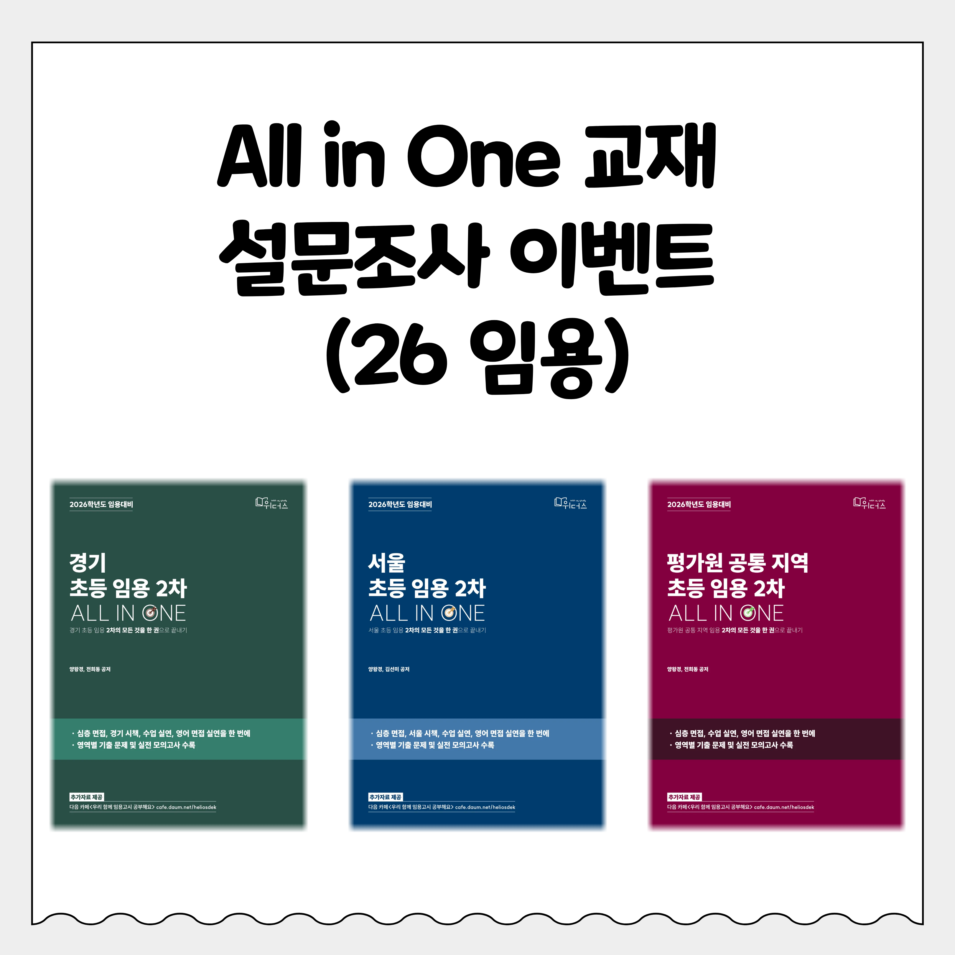 [서울 & 경기 & 평가원 공통 지역] All in One 교재 설문조사 이벤트 (26 임용) (마감)