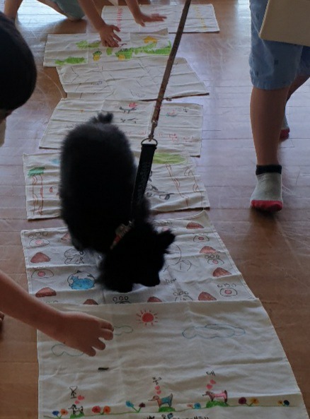 깡총깡총~~ 언니 오빠들이 만들어준 예쁜 방석을 미끄럽지 않게 지나가 봤어요~~
