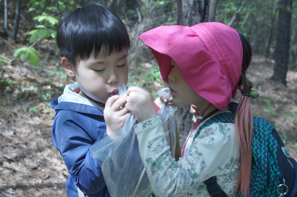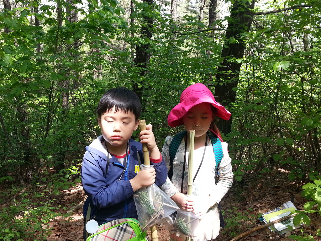 숲에서 나무와 새들과 곤충들이 함께 살아가는 모습을 느끼고