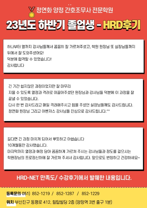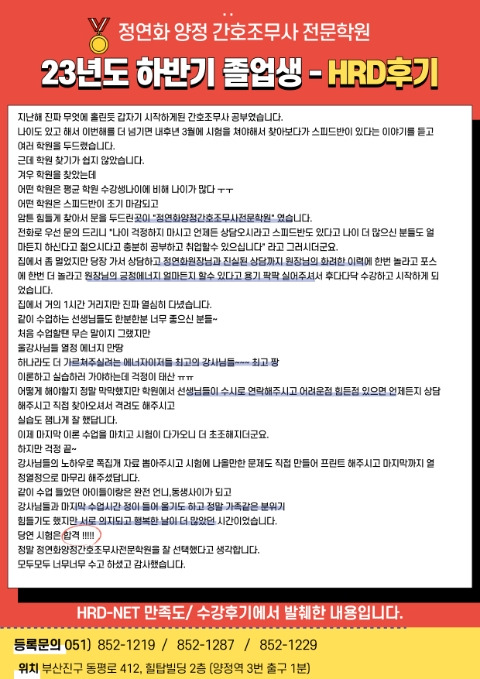 ♡♦️정연화 양정간호조무사 전문 학원-수료생 후기 -♦️♡ ☎️ 051-852-1219/1287/1229