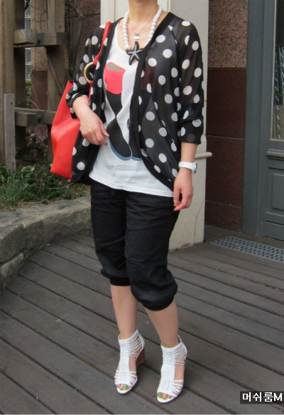 - 홍대거리숍에서 구입한 탑과 시폰 카디건으로 요즘 즐겨 입는 아이템이다.