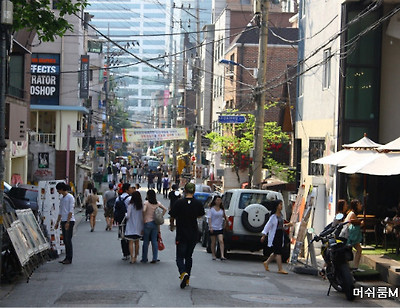 즉 아는 사람만 그 곳을 즐기는 사람, 또는 소문을 듣고 찾아가는 사람 또는 홍대거리 근처에 사는 사람들만이 쇼핑을 즐기며 구석구석 찾아가서 카페와 레스토랑을 즐긴다.