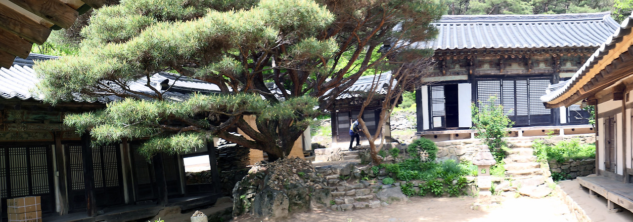 우화루의 낮고 비좁은 누하문을 들어서면 구릉지의 자연적 모습이 그대로 봉정사 영산암의 뜰이 된다.