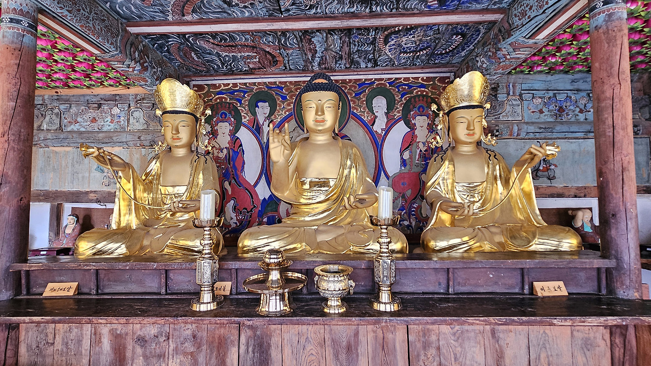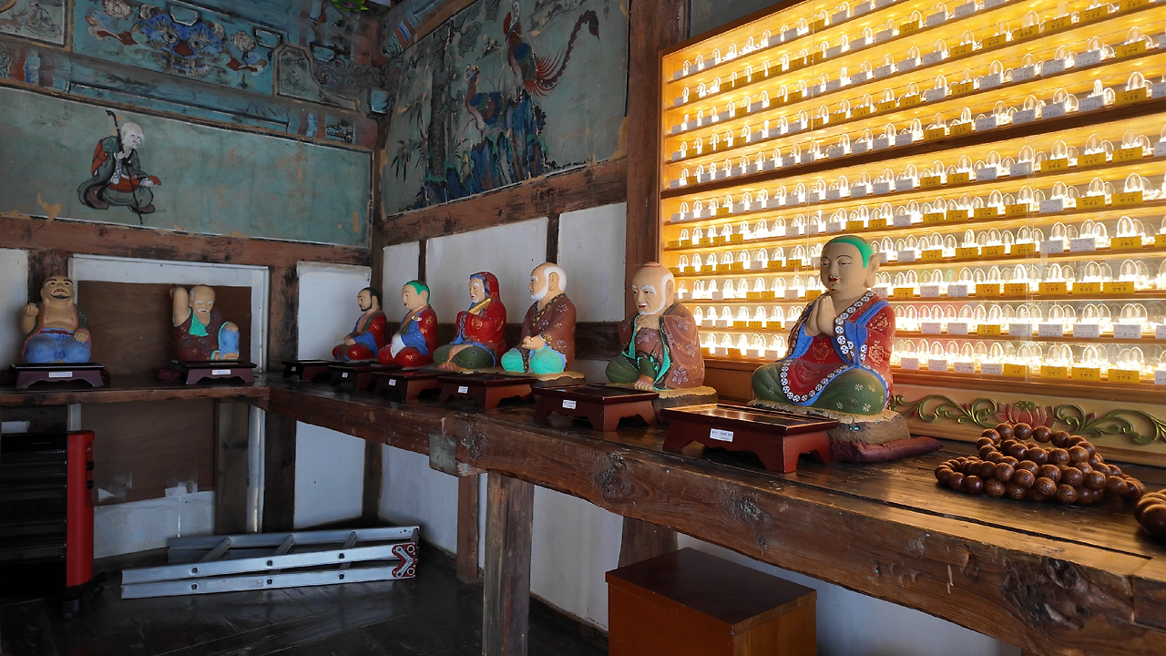 응진전 내에는 석가모니와 보살상 등 셋분이 아주 큰 몸짓으로 영산암을 지키고 있습니다.