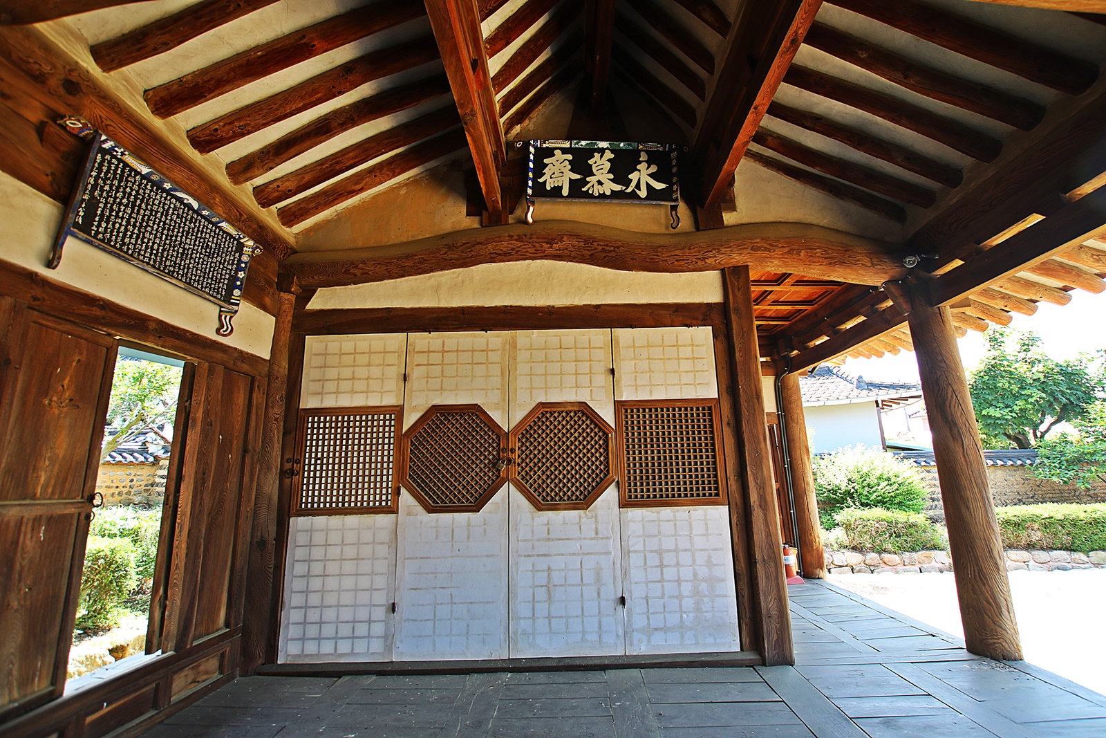 오른쪽 2칸에는 앞이 트인 대청과 오른쪽 끝 1칸은 재방(齋房)으로 꾸몄다.