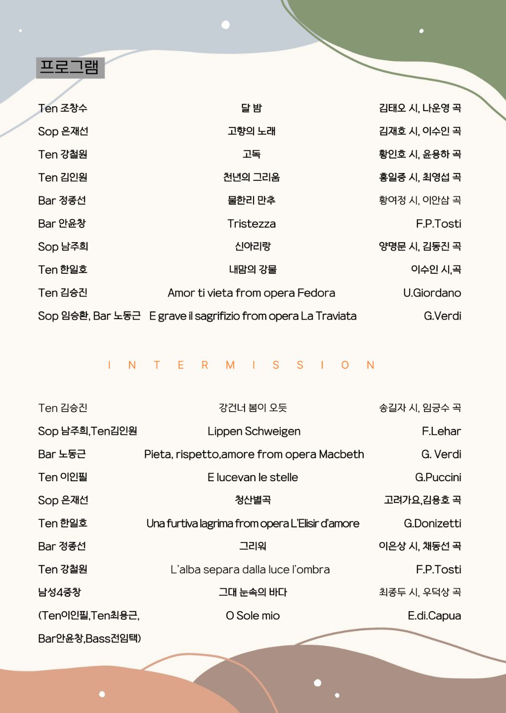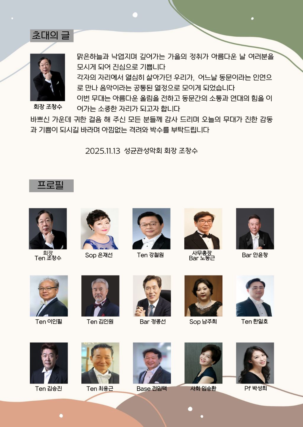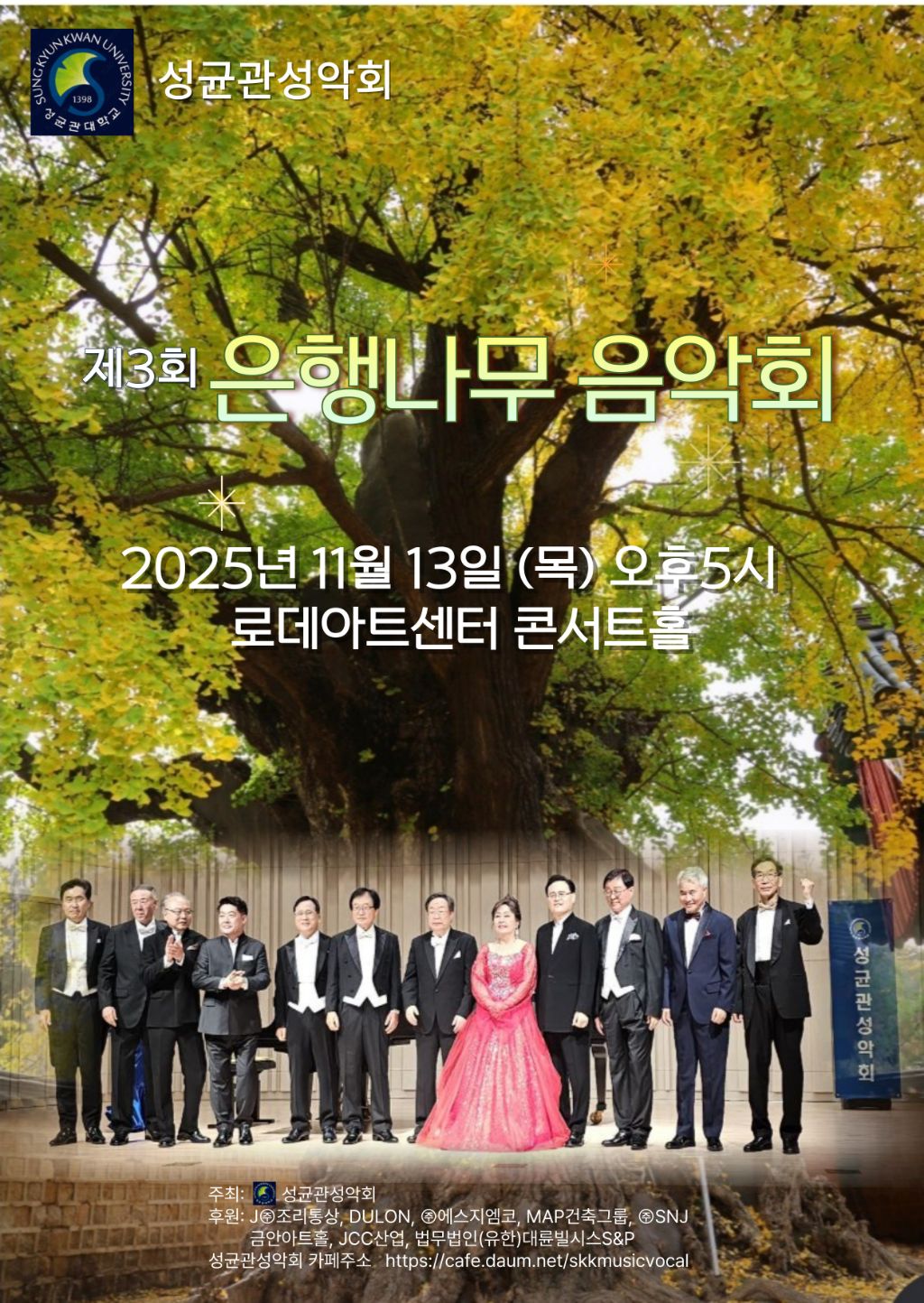 [스크랩] 성균관성악회 제3회 은행나무음악회(2025.11.13(목)오후5시,로데아트센터 콘서트홀) 작성자노동근|작성시간25.10.20|조회수7 목록 댓글 0 글자크기 작게가 글자크기 크게가 전석초대 입니다 다음검색 스크랩 원문 : Luce Chiara 성악클래스 현재 게시글 추가 기능 열기 북마크 신고 센터로 신고 댓글 댓글 0 댓글쓰기 답글쓰기 댓글 리스트