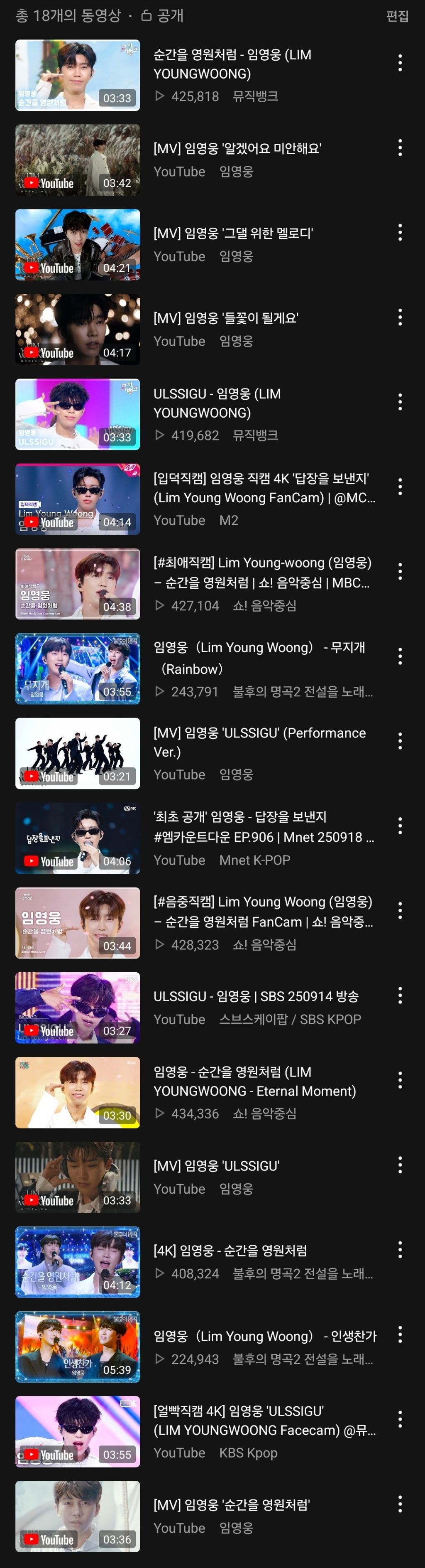 뮤빗 영상 리스트, 음방 영상 리스트가