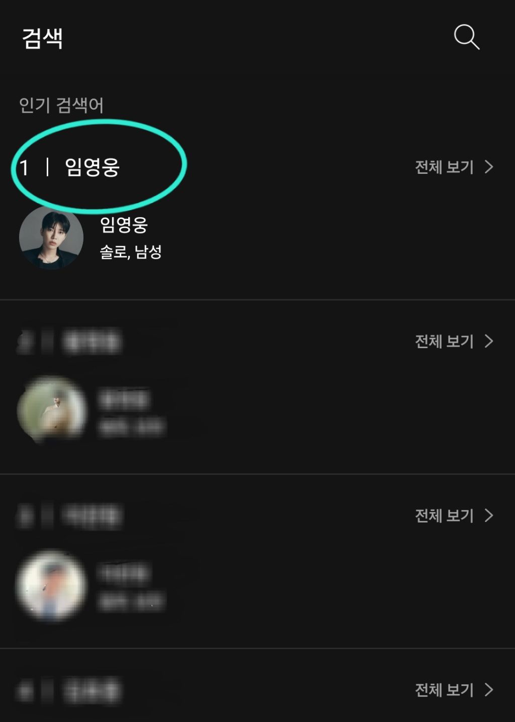 돋보기- 임영웅 검색- 임영웅 클릭-