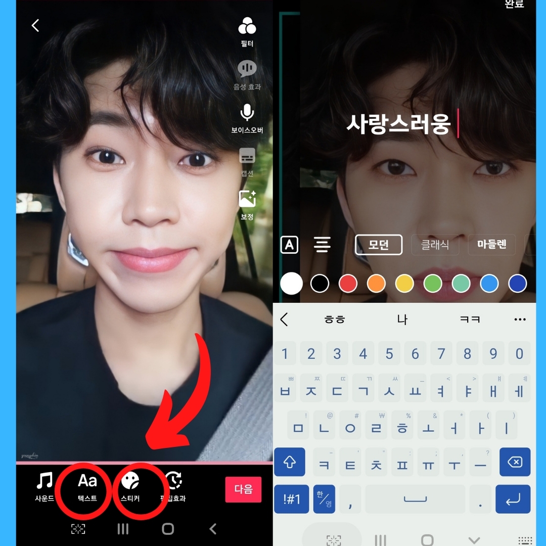 ▶️텍스트와 이모티콘으로 예쁘게 영상을 꾸며주세요🤗🤗