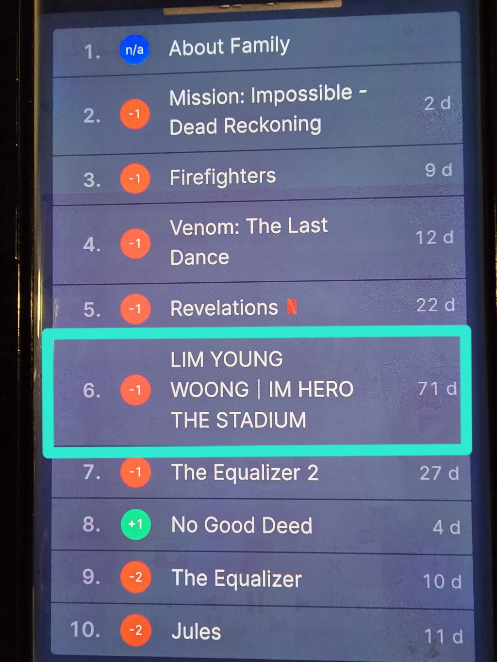 6위 우리영화 1계단 내리고.