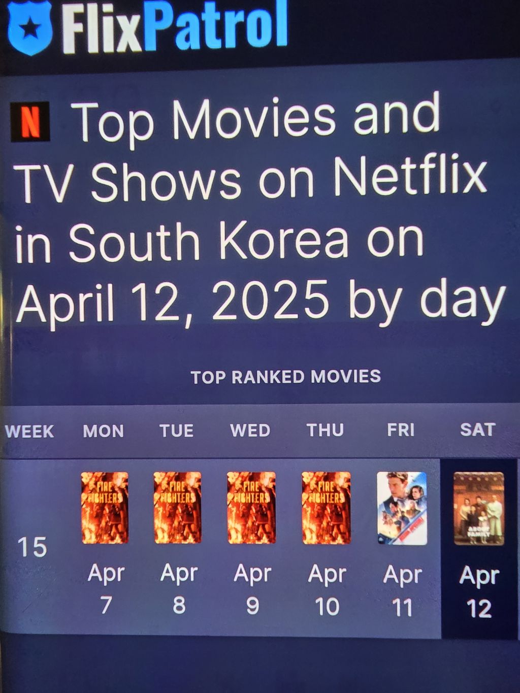 [ 넷플릭스 ][ 오늘 영화 ] 순위 [ 오늘대한민국Top10 ]🚂 4/12일 현재 ( 6위 )1계단아래로. 해외순위 데이터 참고.