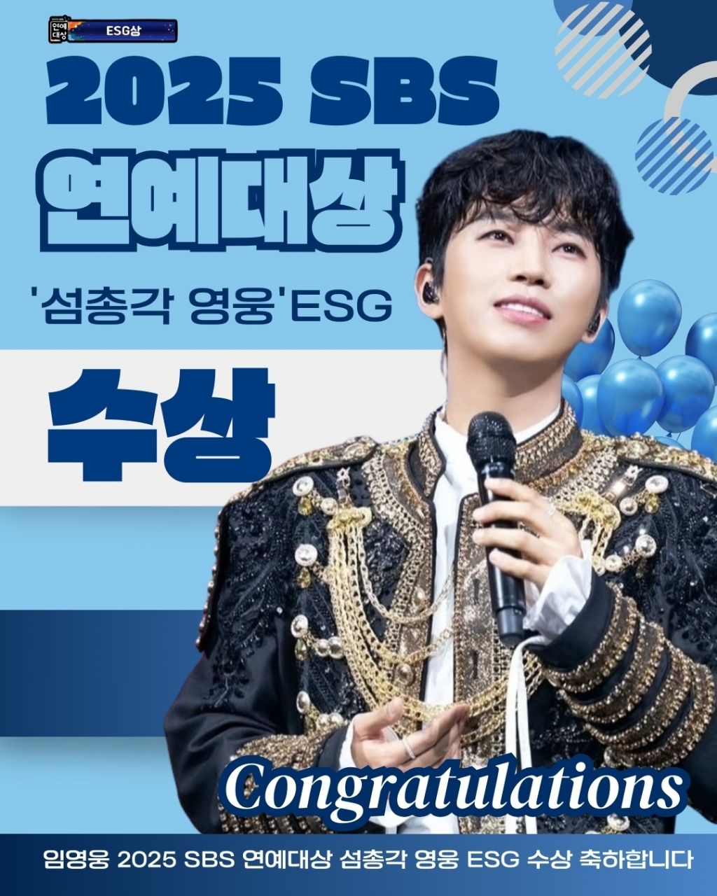 임영웅 2025 SBS 연예대상 '섬총각 영웅' ESG상 수상