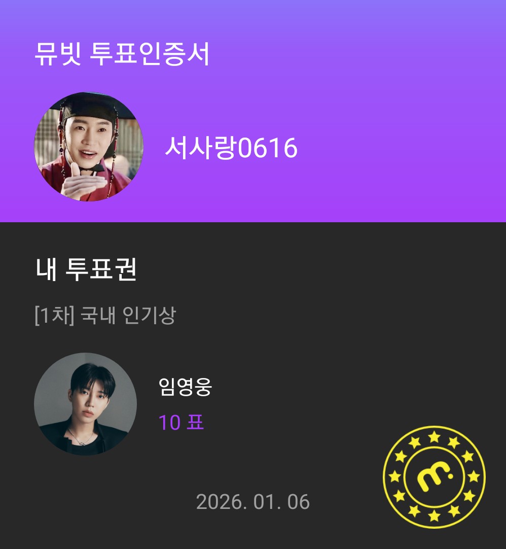 작성자시월님(서산) 작성시간 26.01.06 제발요 한터뮤직어워즈 뮤빗 조금만 하시고 모아주세요 많이 필요해요 장기전