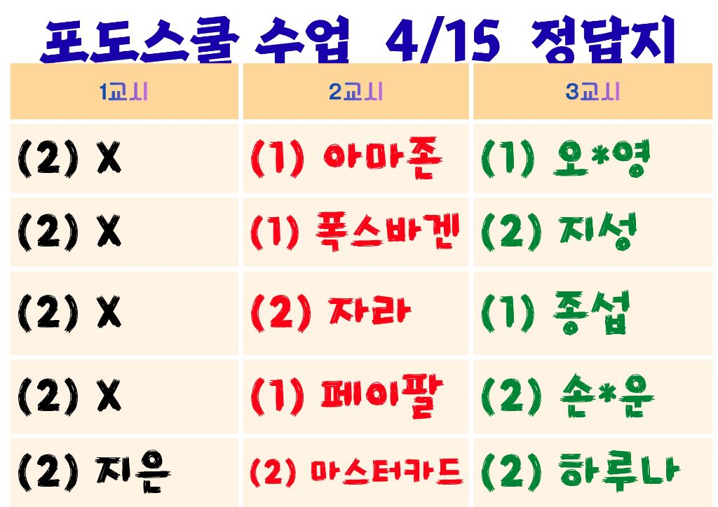 πν¬λμ€μΏ¨ μ λ΅μ λλ€.(4μ15μΌ)