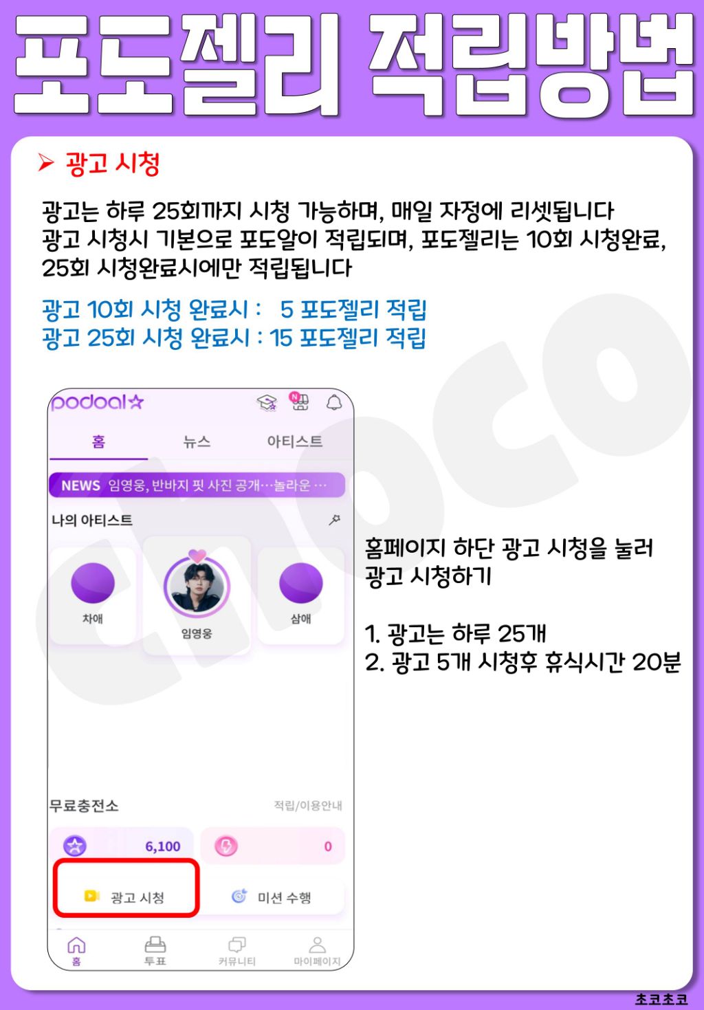👉 광고 10회보면 포도젤리 3개 보상지급