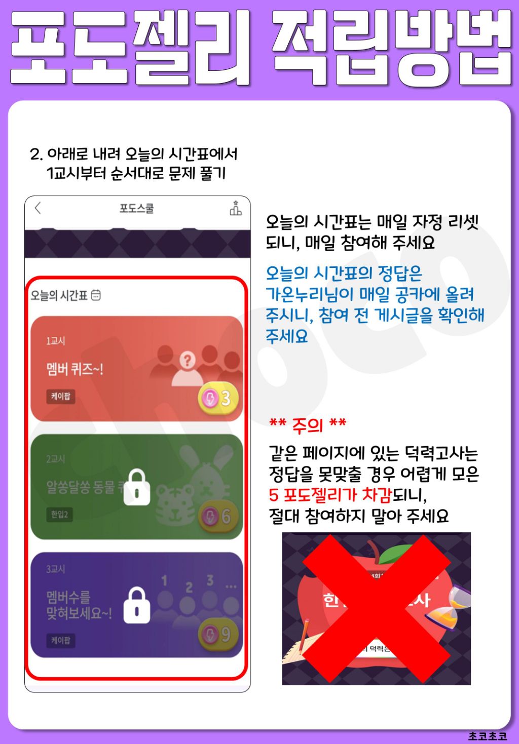 2. 오늘의 시간표 퀴즈 풀고 적립