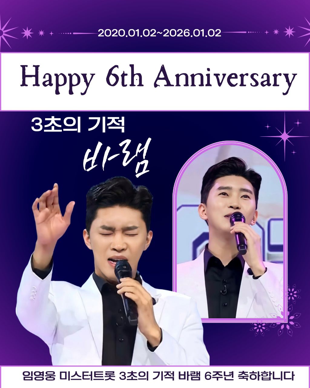 작성자풍경(의왕) 작성시간 26.01.06 임영웅 울영웅님 바램6주년 축하합니다 바램 부를때부터 좋아했어요 멋진사진 잘모셔갑니다 건행