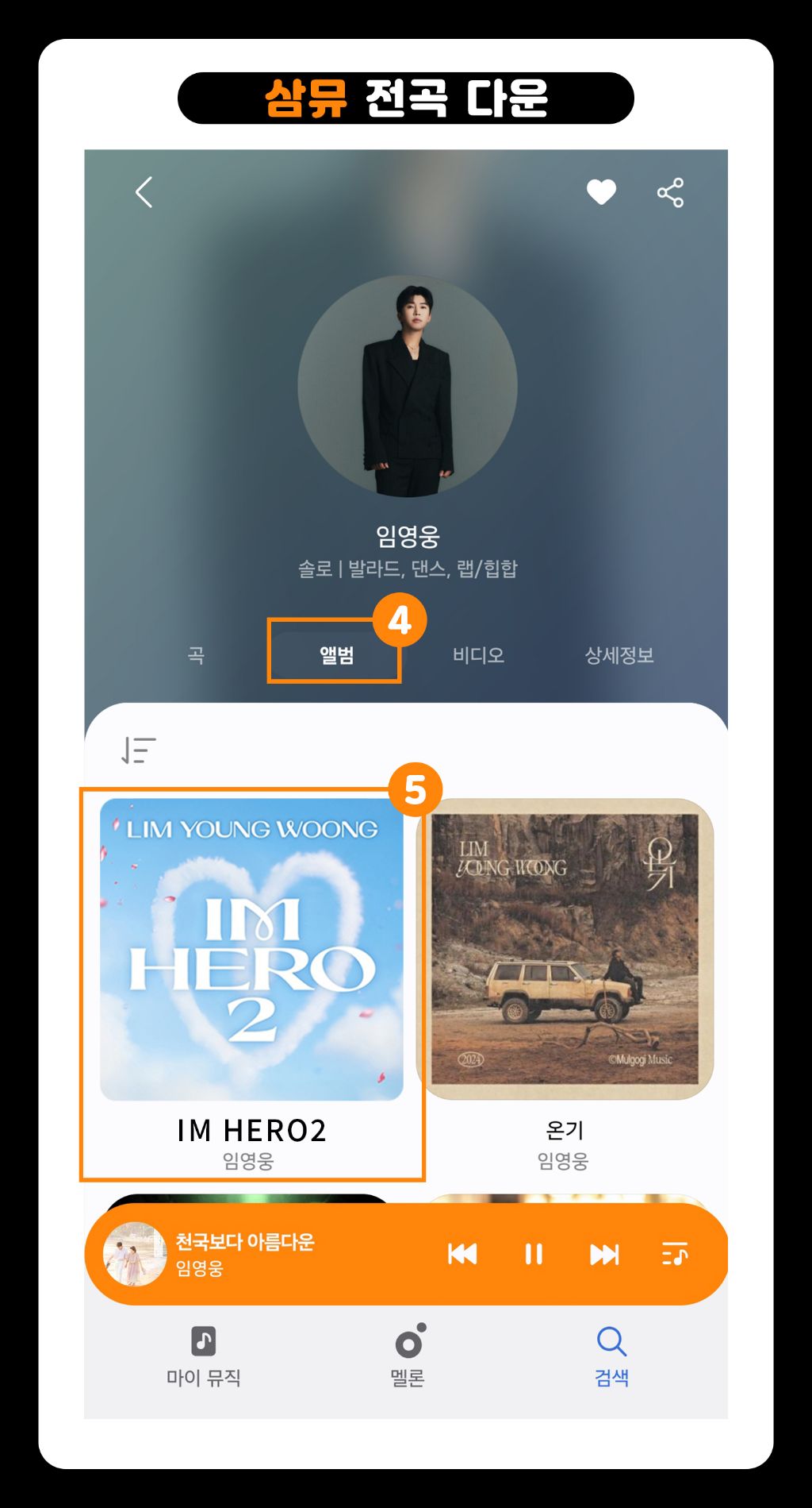 앨범을 클릭하시고 IM HERO2 클릭해주세요.