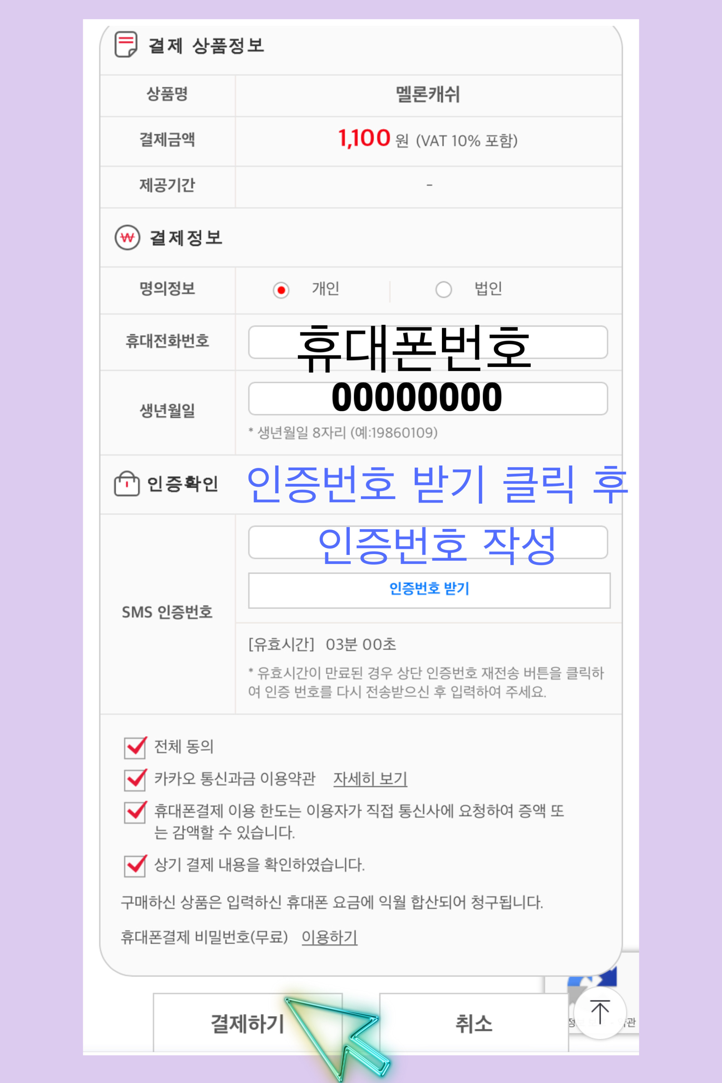 μμΌ, μμ± ν μΈμ¦λ²νΈ λ°κΈ° ν΄λ¦ ν μΈμ¦ λ²νΈ μμ±νμκ³ κ²°μ νκΈ° ν΄λ¦ν©λλ€.