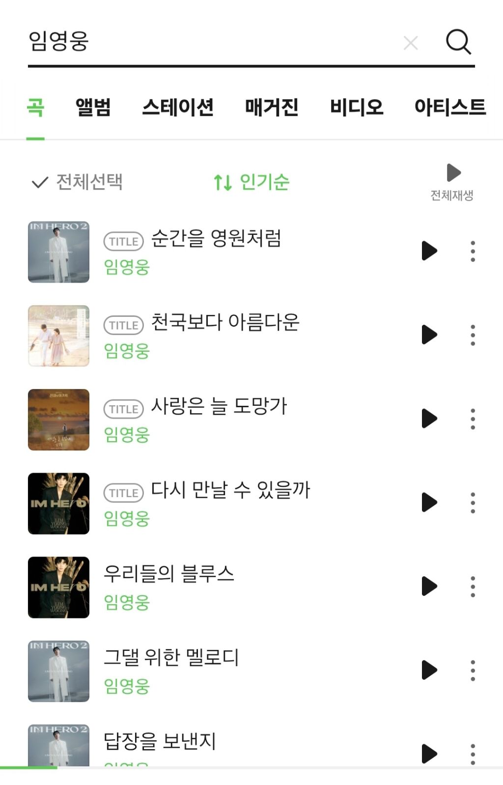 아티스트 영웅님 순위도 올리고 💙💙💙