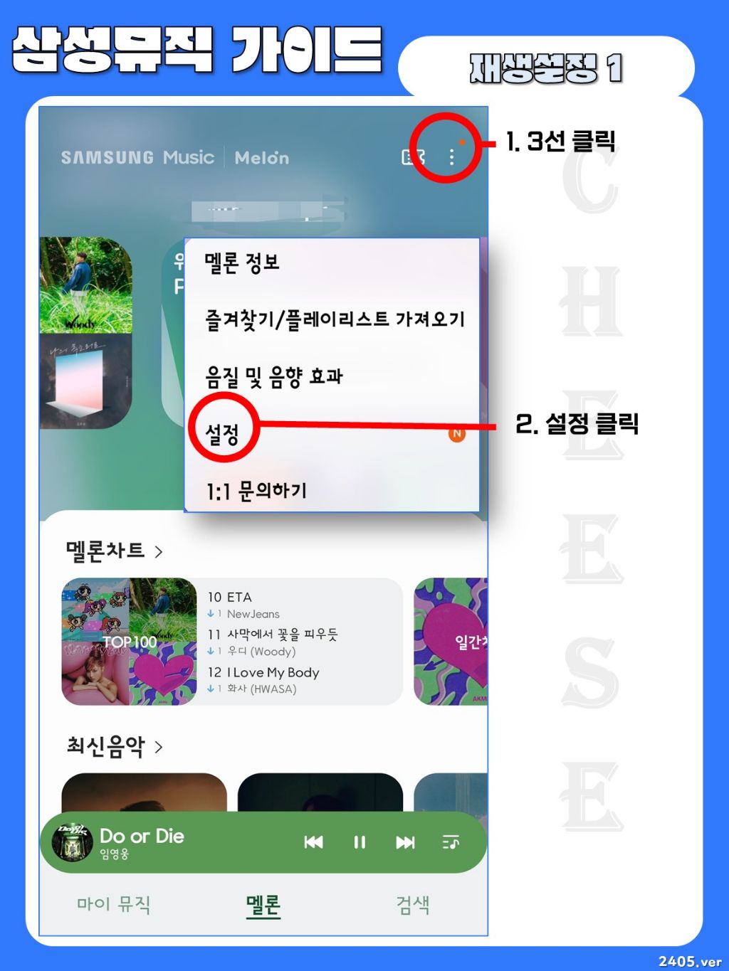 삼성뮤직에서의 스밍은 하나의 폰에서 멜론 2계정을 동시에 스밍할 수 있는 방법입니다