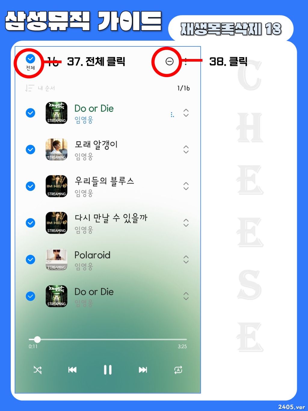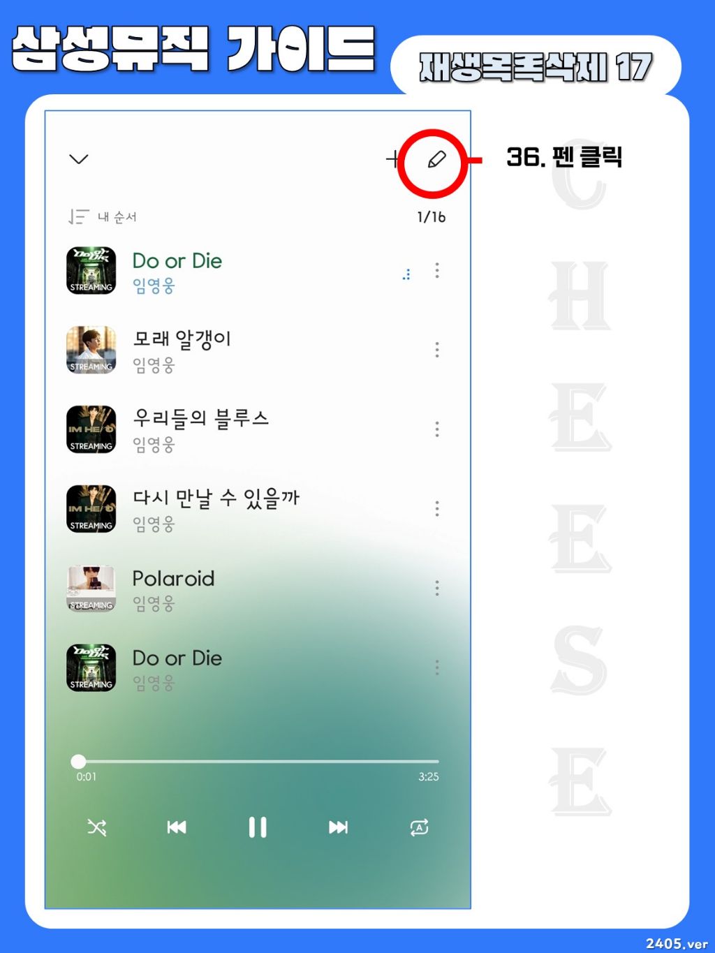 👉 재생 목록 삭제는 기존 스밍리스트를 삭제하거나 잘못해서 곡이 1-2곡 재생목록에 들어갔을때 삭제할 수 있는 방법입니다