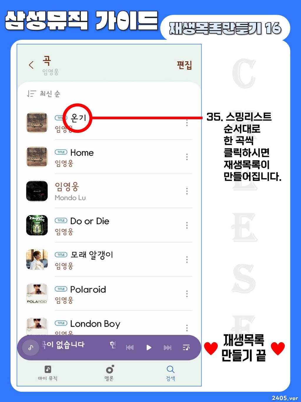 가능하신 분들은 삼성뮤직 어플을 이용하여 멜론 추가하시고 같이 스밍해요😄