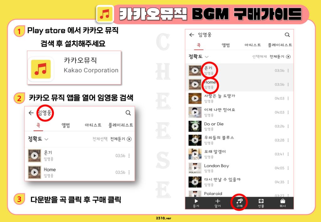 카카오 뮤직 BGM은 카카오 뮤직 어플에서 직접 구매하셔야 합니다