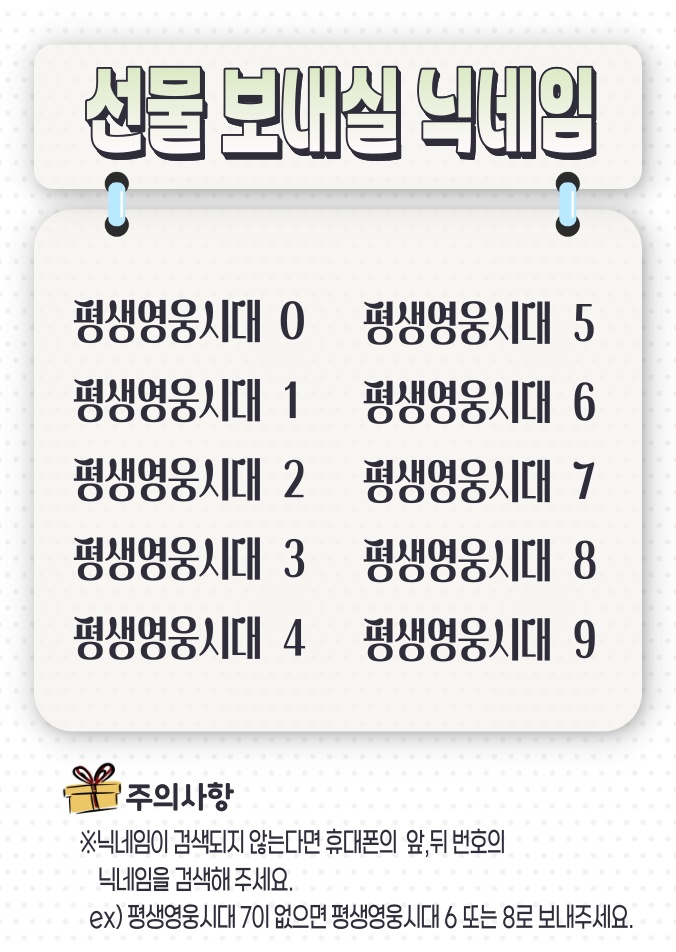 맞게 공개된 닉네임 번호로 보내 주시면 됩