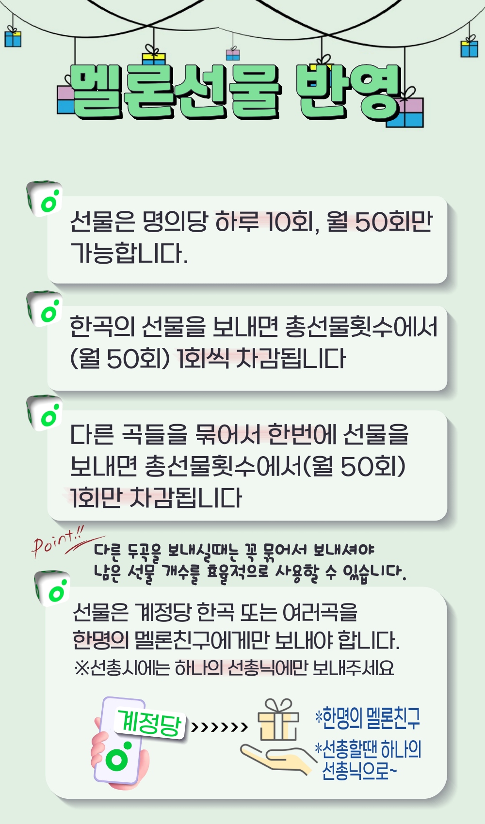 ✅️ 선물은 명의당 1일 10회, 한달에 50개