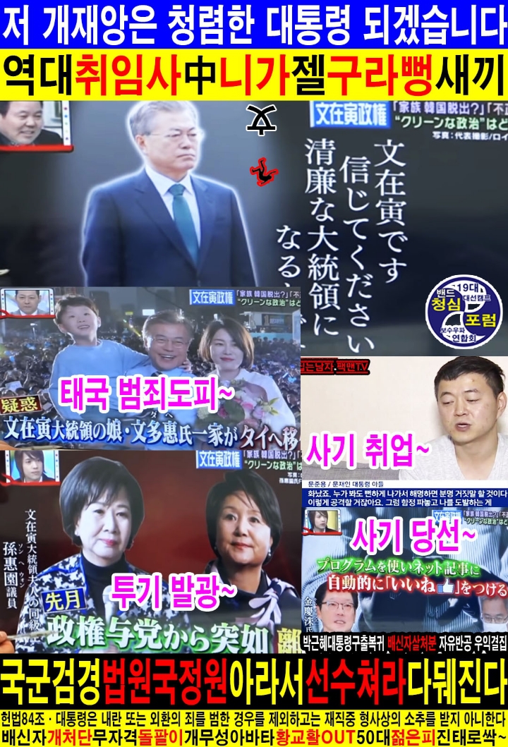 역대 대통령 취임사중 제일 거짓말 투성이는 문재인취임사 작성자자유반공우익|작성시간19.03.12|조회수45 목록 댓글 1 글자크기 작게가 글자크기 크게가 ㆍ 다음검색 현재 게시글 추가 기능 열기 북마크 공유하기 신고 센터로 신고 댓글 댓글 1 댓글쓰기 답글쓰기 댓글 리스트 작성자우리는 하나 | 작성시간 19.03.12 빨갱이들 모조리 쥑여도돼 댓글 전체보기