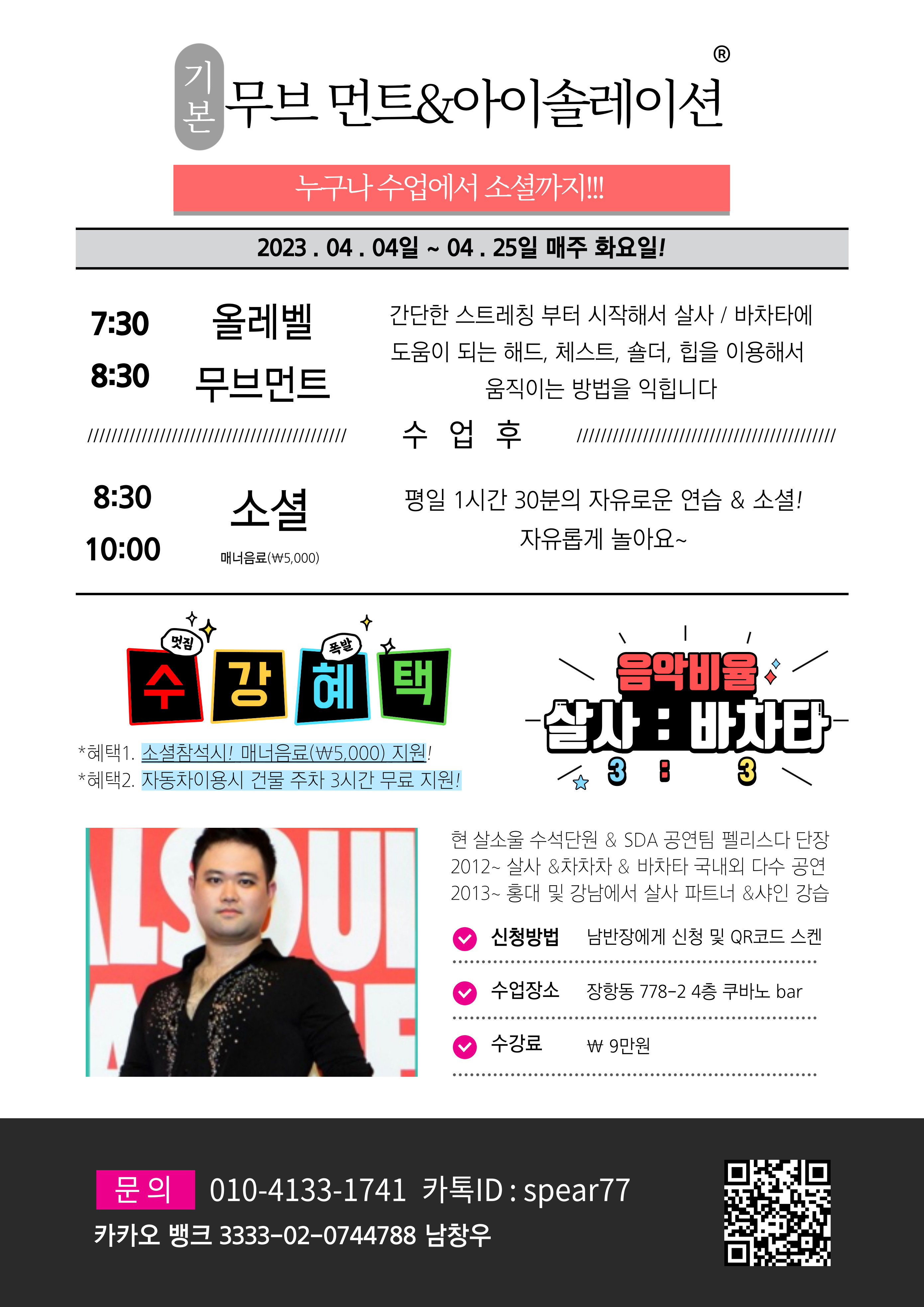 2023.04월 쿠바노 화요일 수업 및 소셜 작성자남반장|작성시간23.03.28|조회수218 목록 댓글 0 글자크기 작게가 글자크기 크게가 4월도 무브먼트& 연습 소셜 달려 봅시다!!! 신청링크 : https://forms.gle/FLE4ZxGfK5rEhHet9 다음검색 현재 게시글 추가 기능 열기 북마크 공유하기 신고 센터로 신고 댓글 댓글 0 댓글쓰기 답글쓰기 댓글 리스트